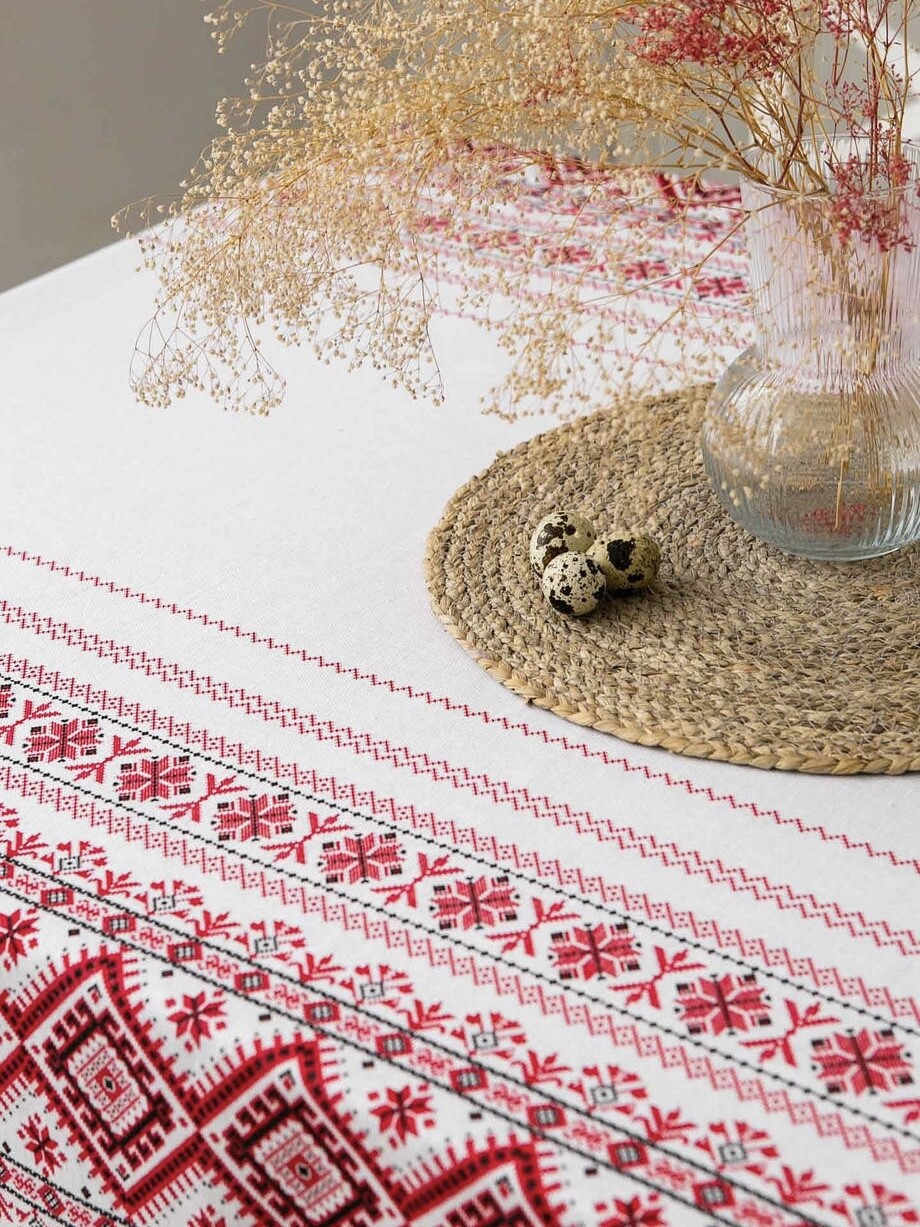 Тканина: льон-рогожка 100% натуральна Бавовна з ефектом об'ємної вишивки і з фактурою натурального льону.
