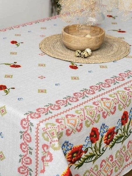Тканина: льон-рогожка 100% натуральна Бавовна з ефектом об'ємної вишивки і з фактурою натурального льону.
